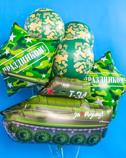 Кроме того, шары на празднике 23 февраля могут стать оригинальным способом передать поздравления и благодарность военным и защитникам Родины. Например, можно использовать шары в цветах государственного флага России — белый, синий и красный — и создать из них буквы «СПАСИБО» или «23 ФЕВРАЛЯ». Также шары можно использовать для создания военной тематики — например, сделать буквы из шаров в виде боевых самолетов, танков и другой военной техники.